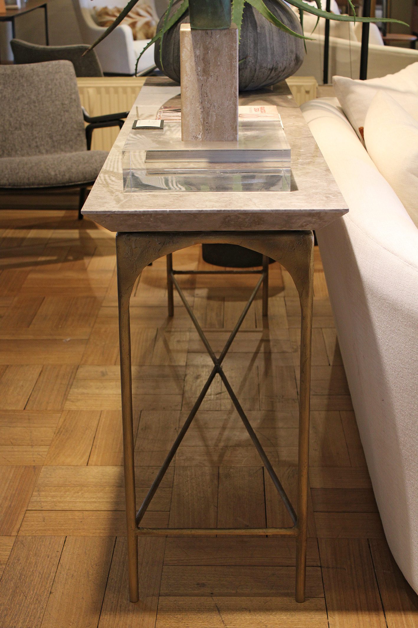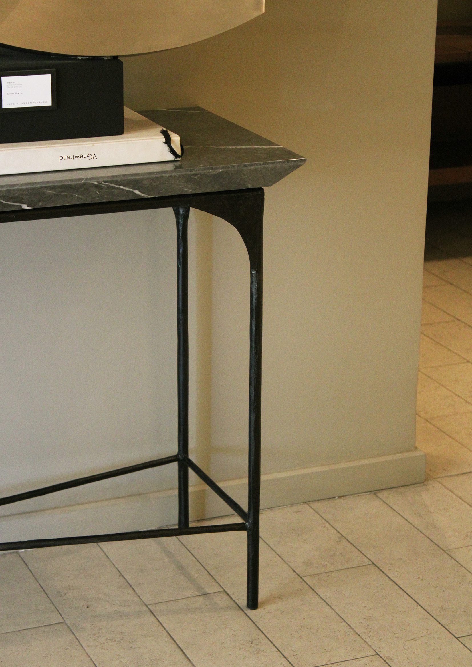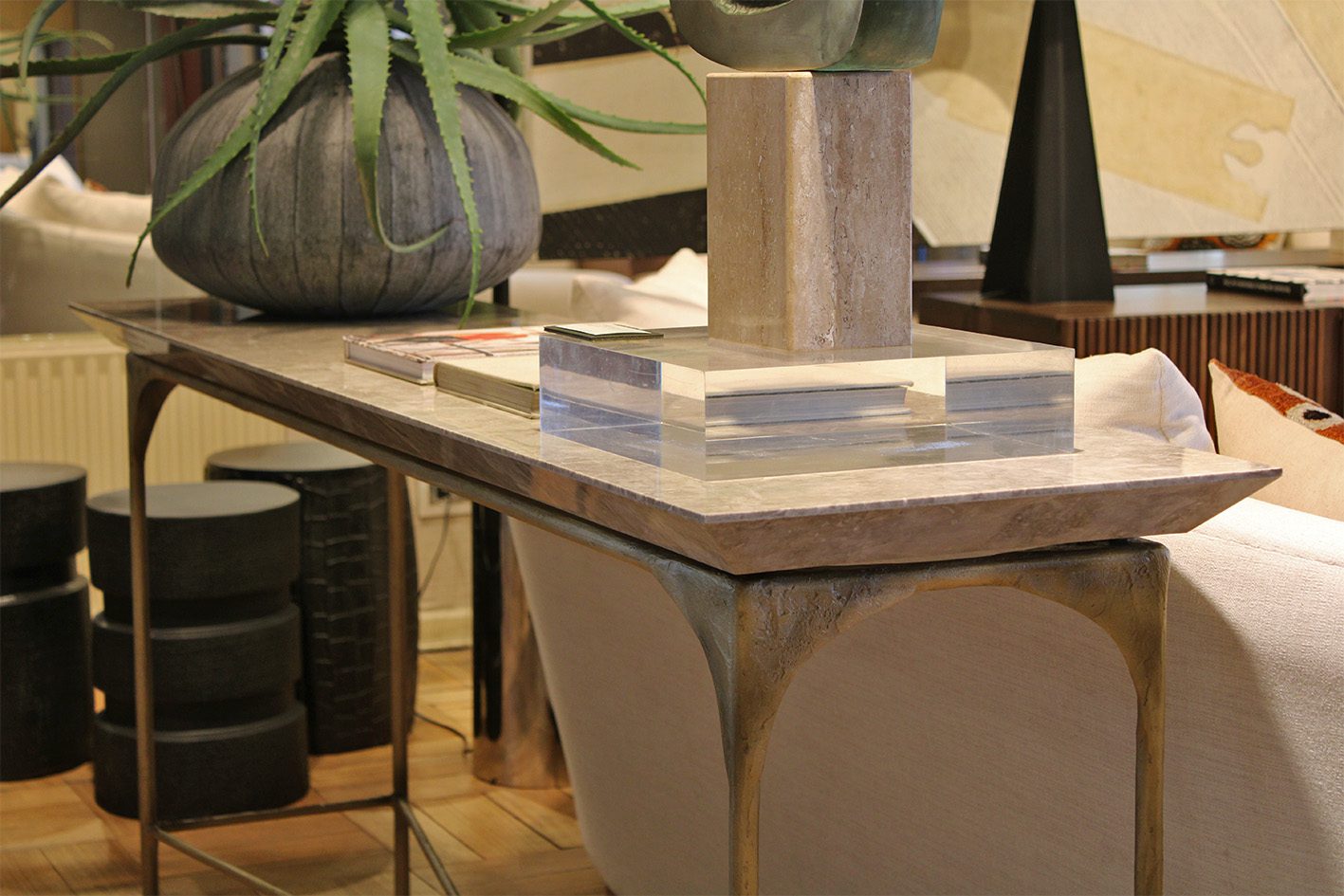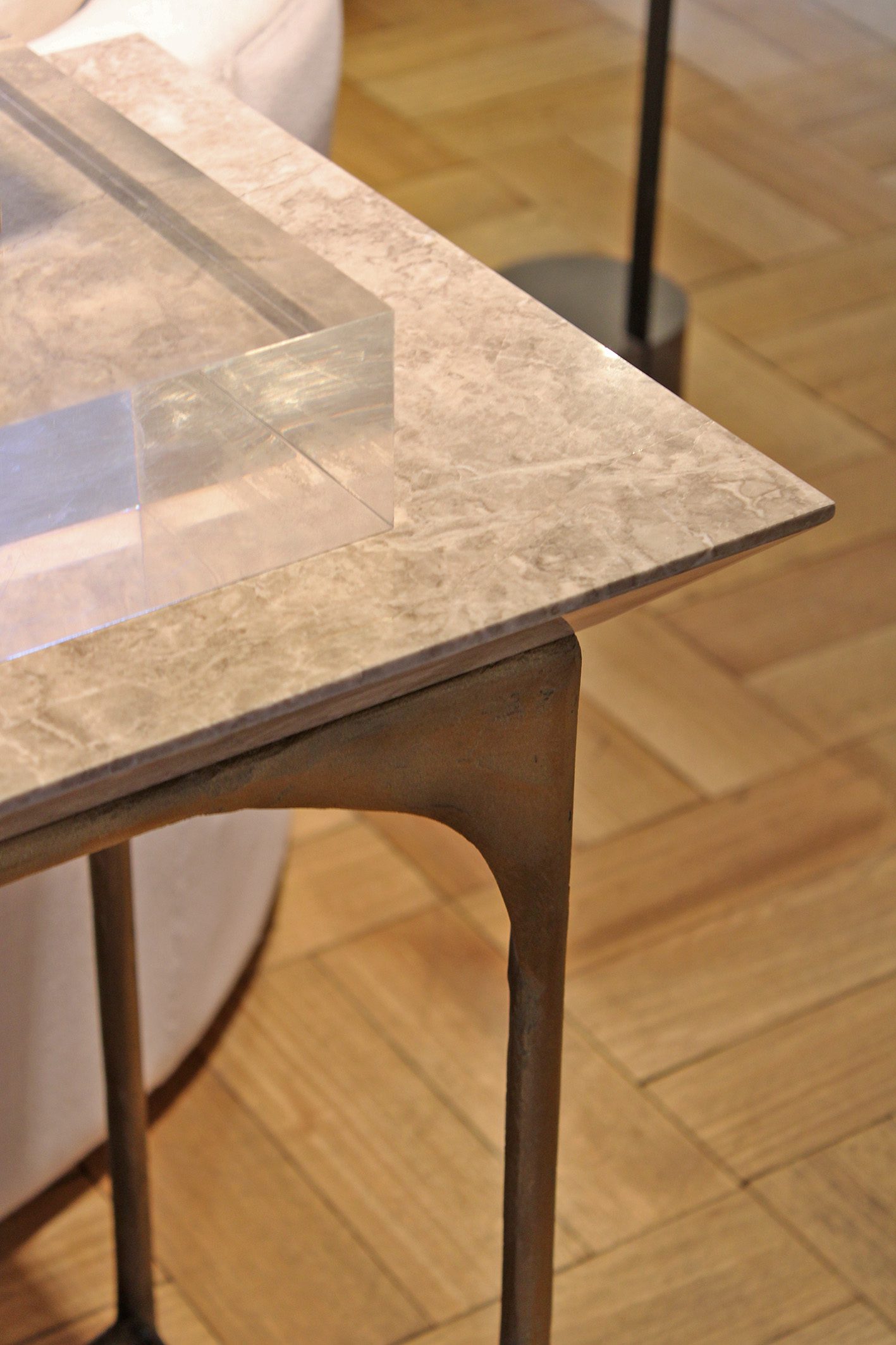 Arrimo con estructura de metal en patina negra o pátina de bronce, con cubierta de mármol «Slim Stone» terminación según disponibilidad