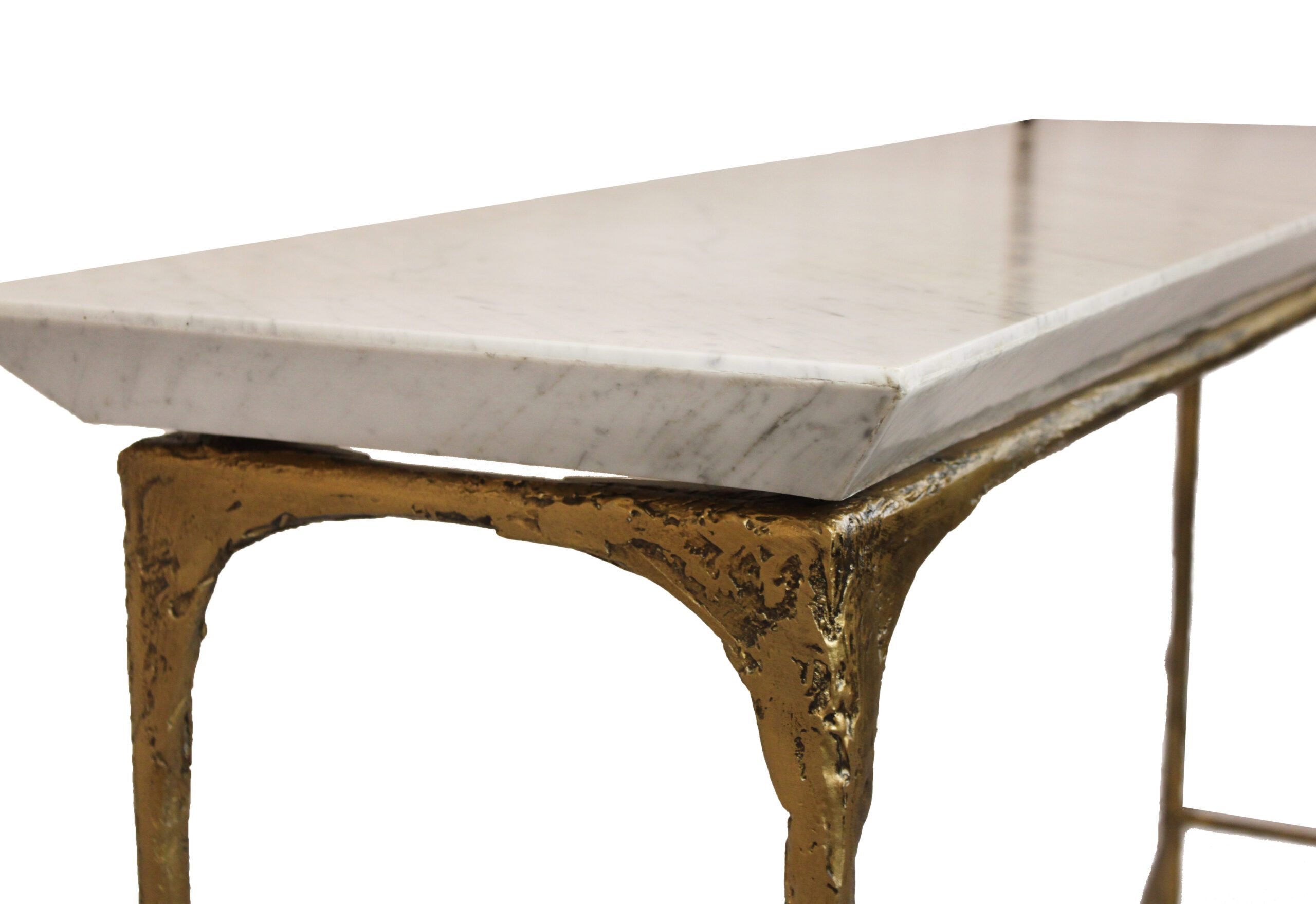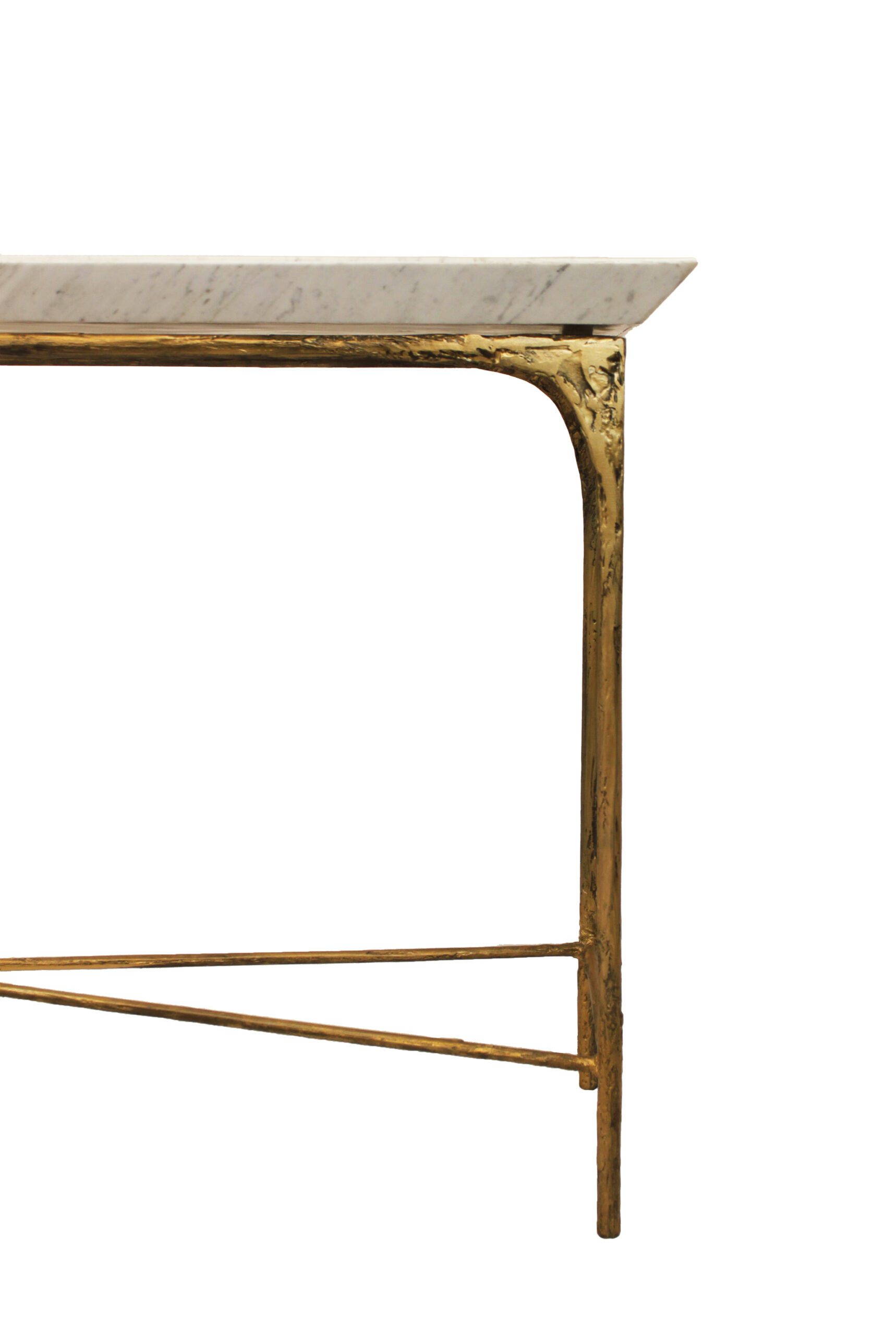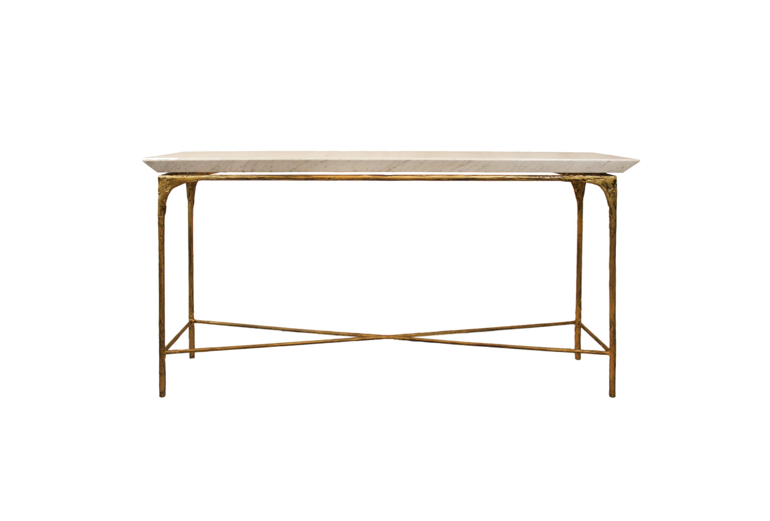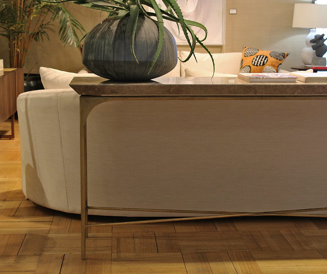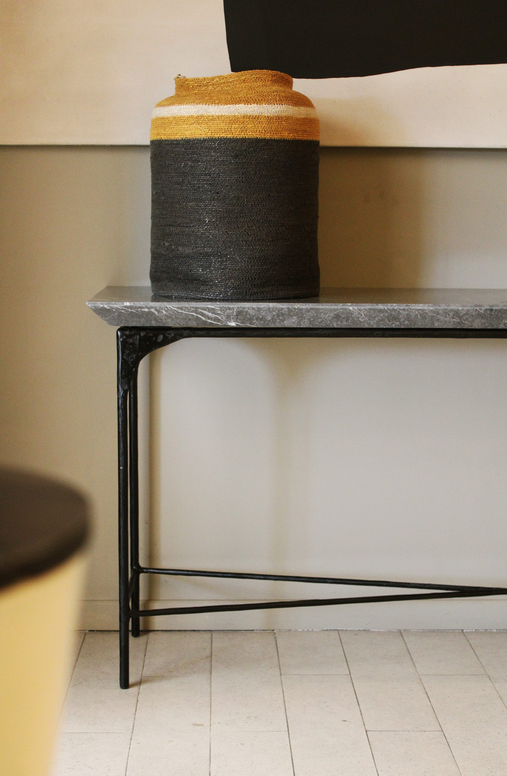 Arrimo con estructura de metal en patina negra o pátina de bronce, con cubierta de mármol «Slim Stone» terminación según disponibilidad