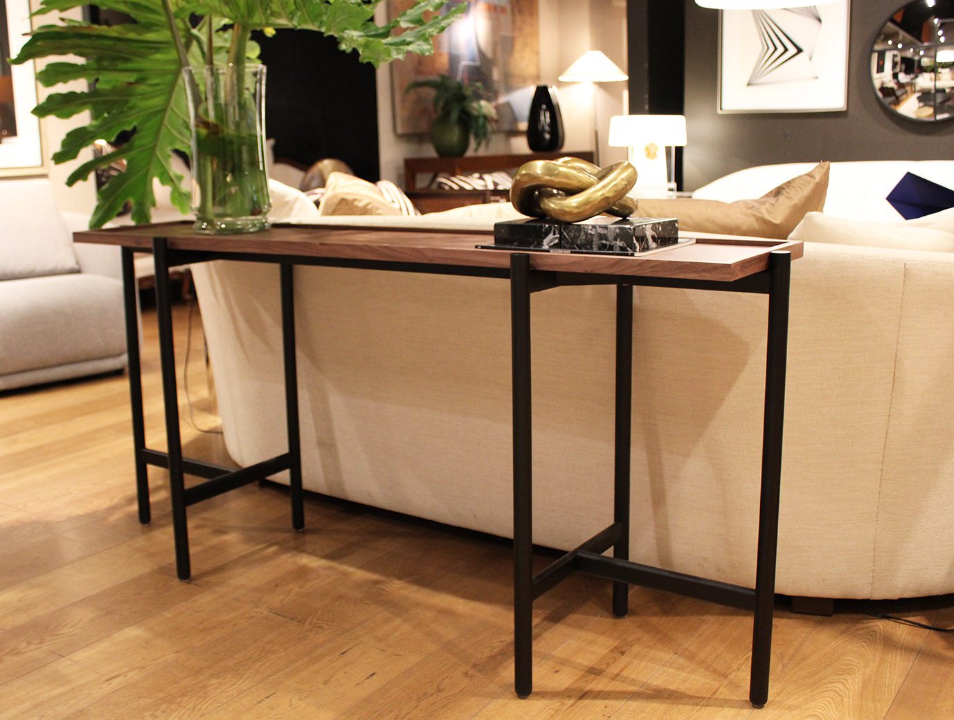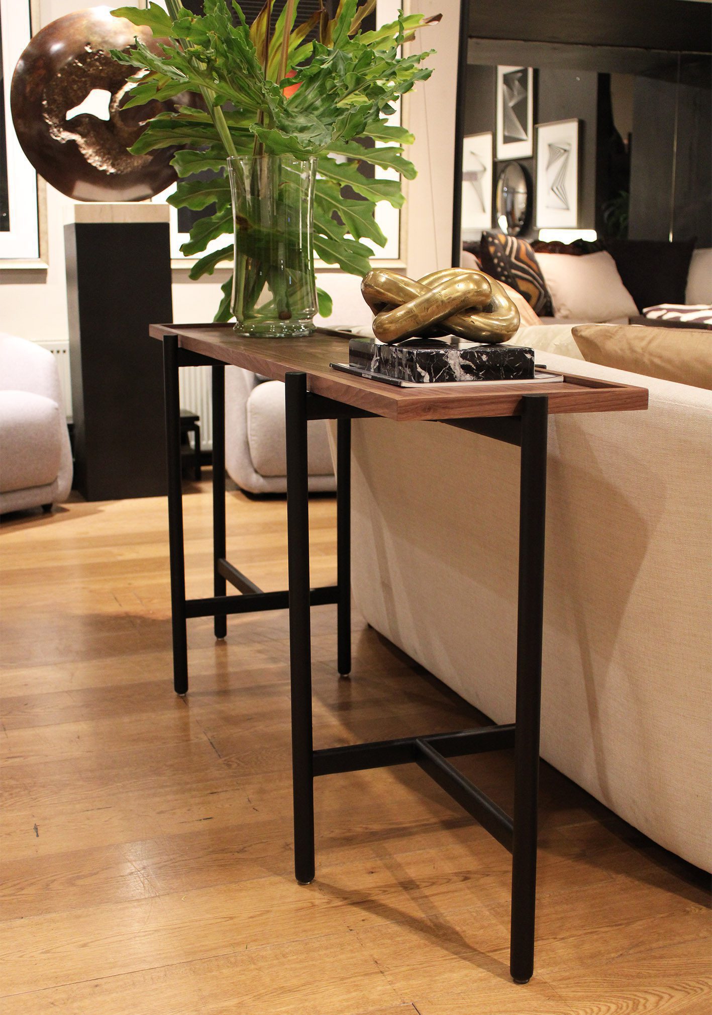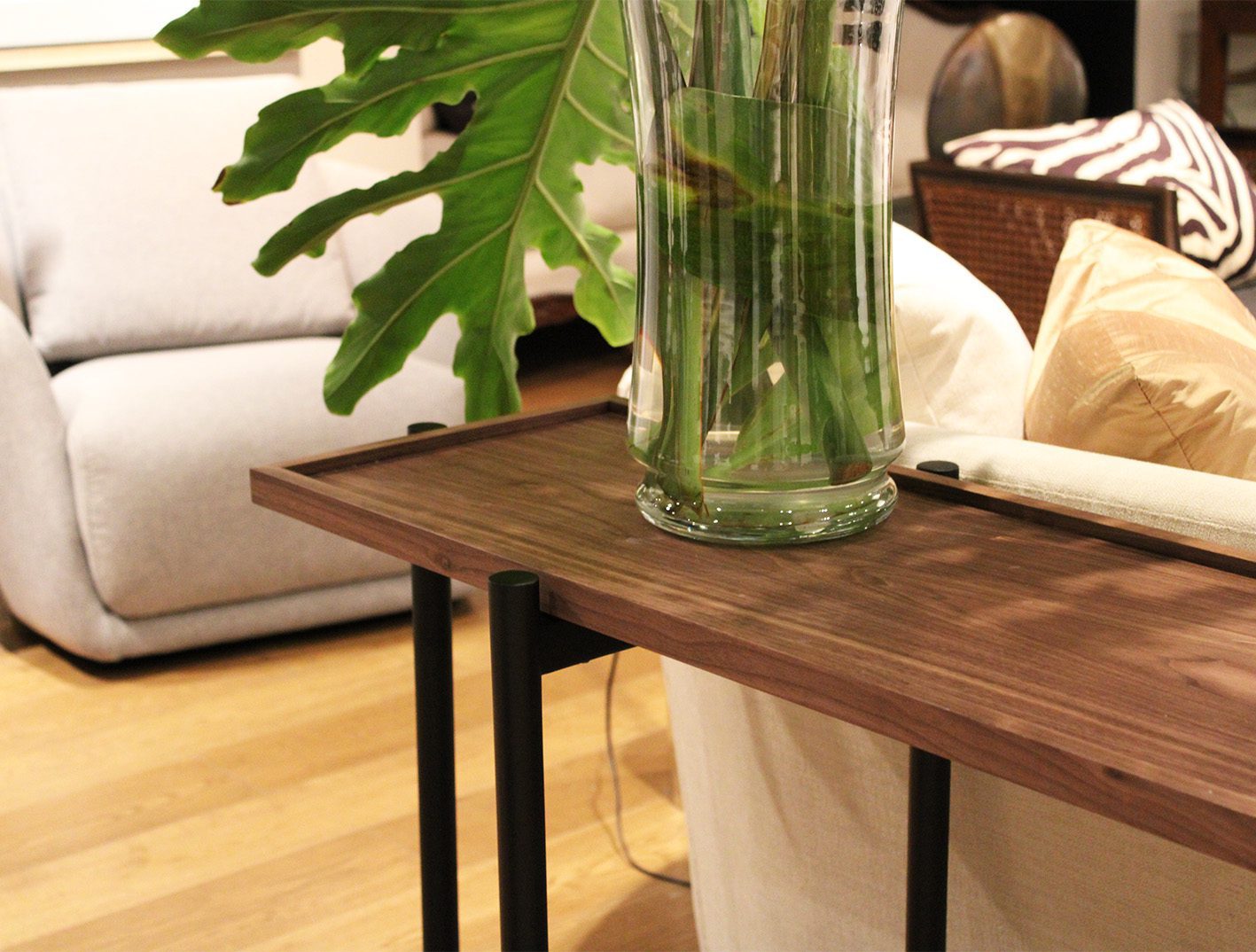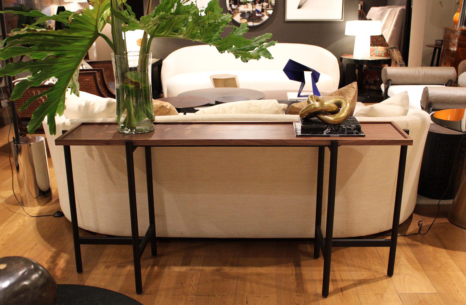 Arrimo con cubierta en madera de Nogueira con patas terminación ébano.