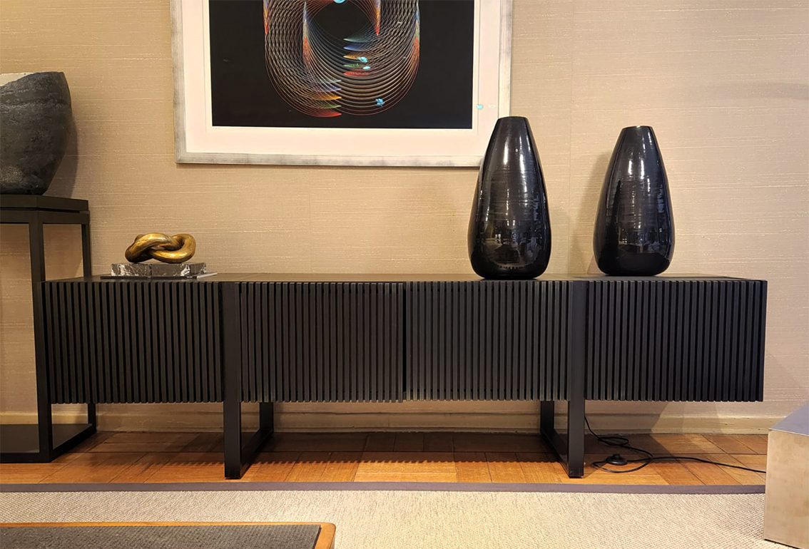 Home theater con cuatro puertas puertas abatibles, con la posibilidad de añadirle dos nichos de la misma línea a los costados, quedando de un largo mayor.