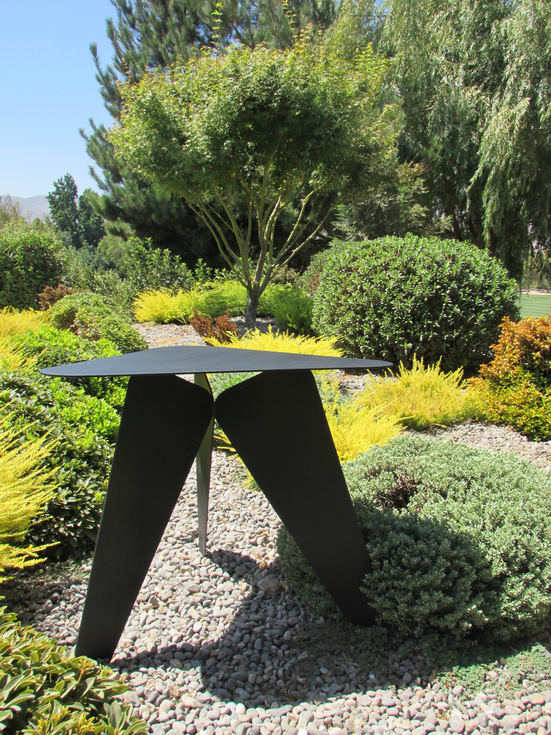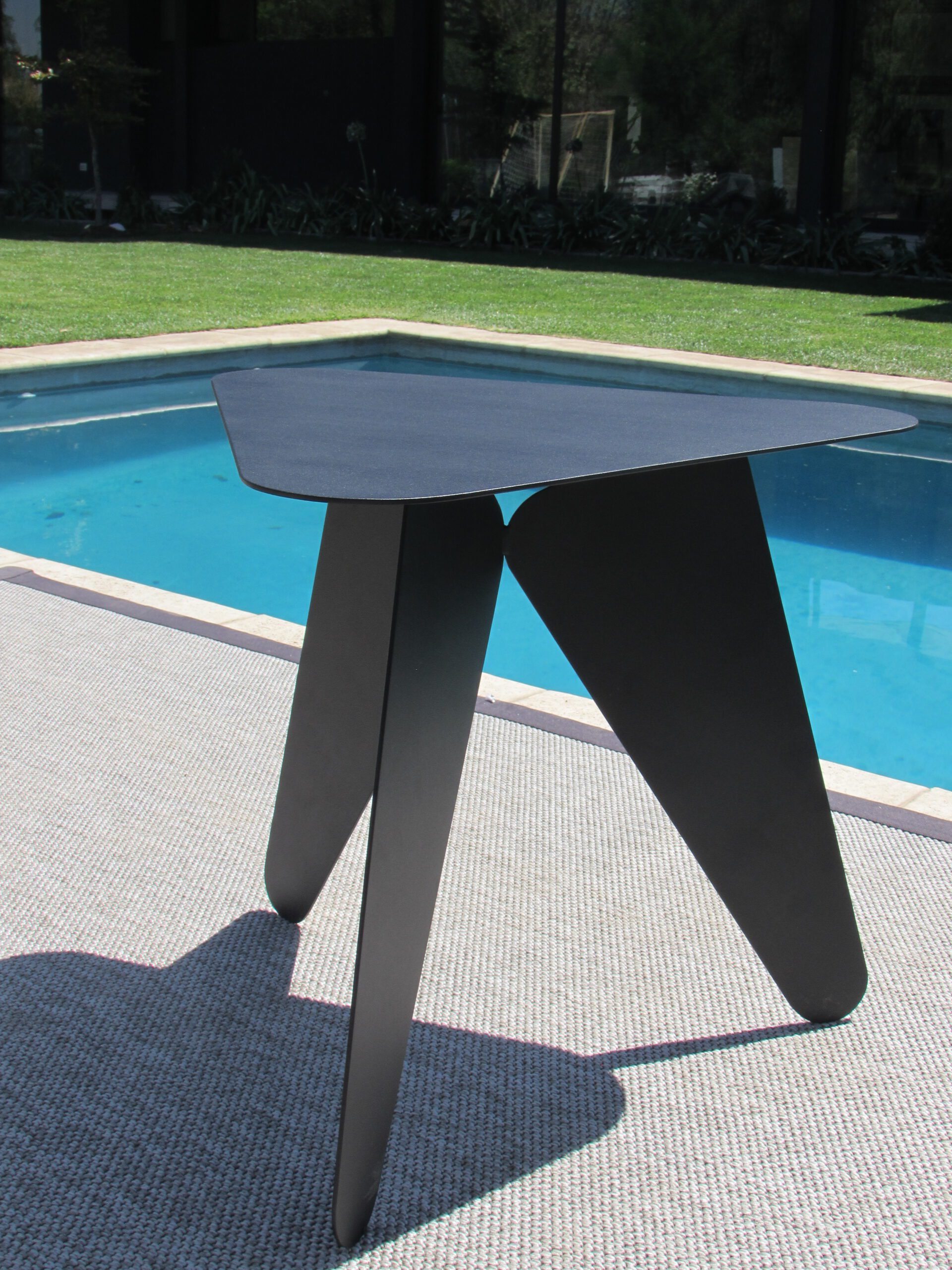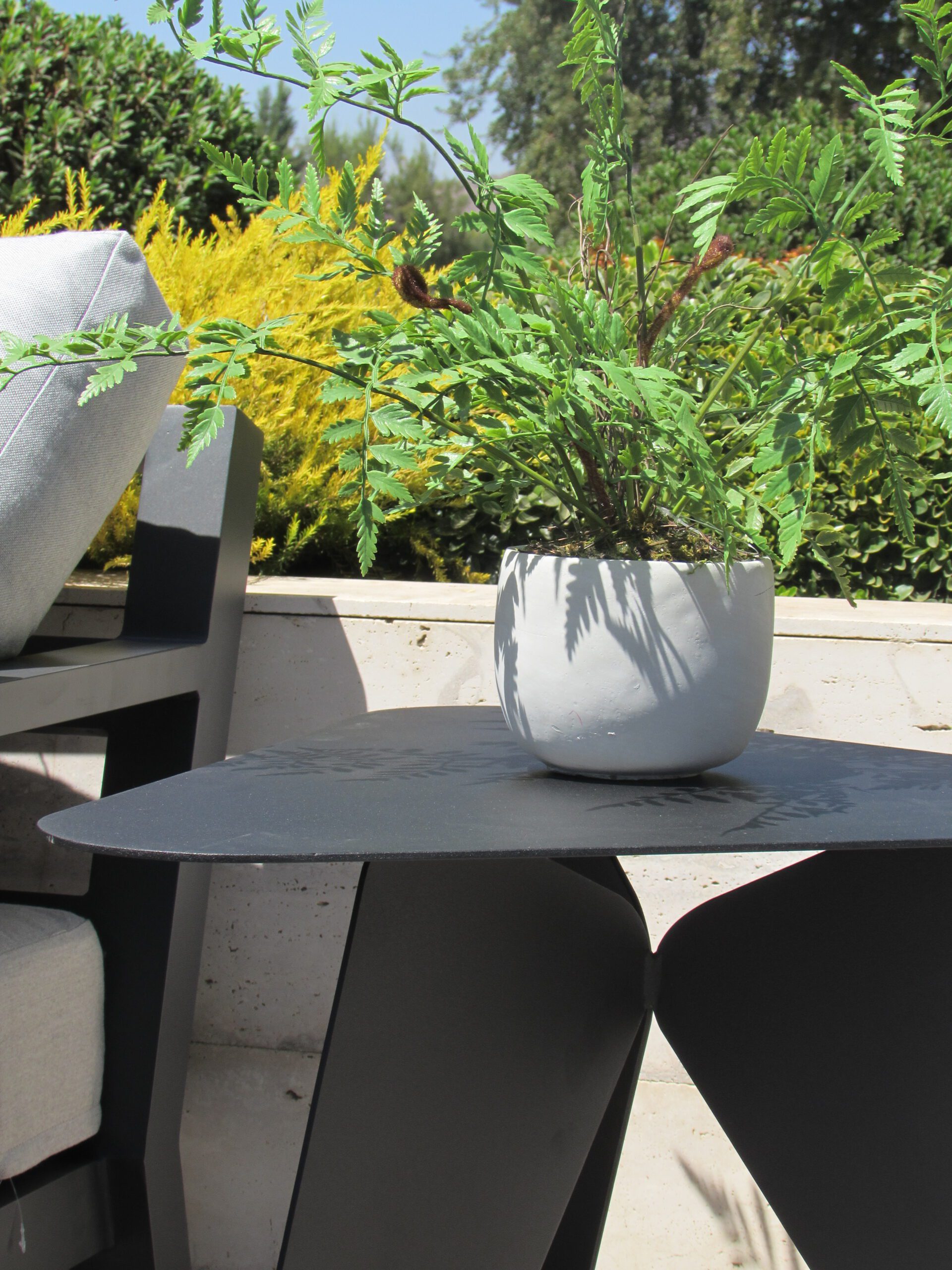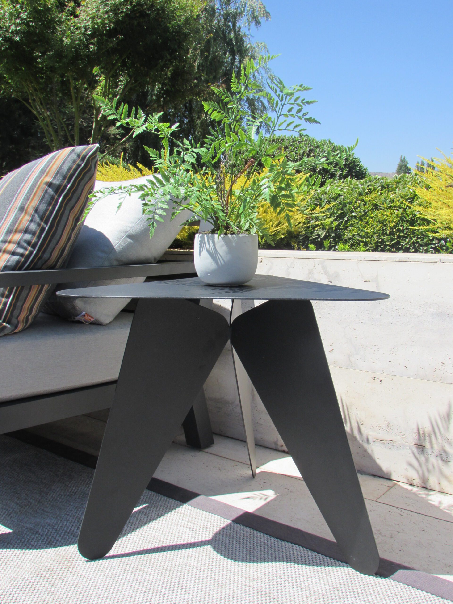 Mesa lateral en metal electro pintado, ideal para exteriores.