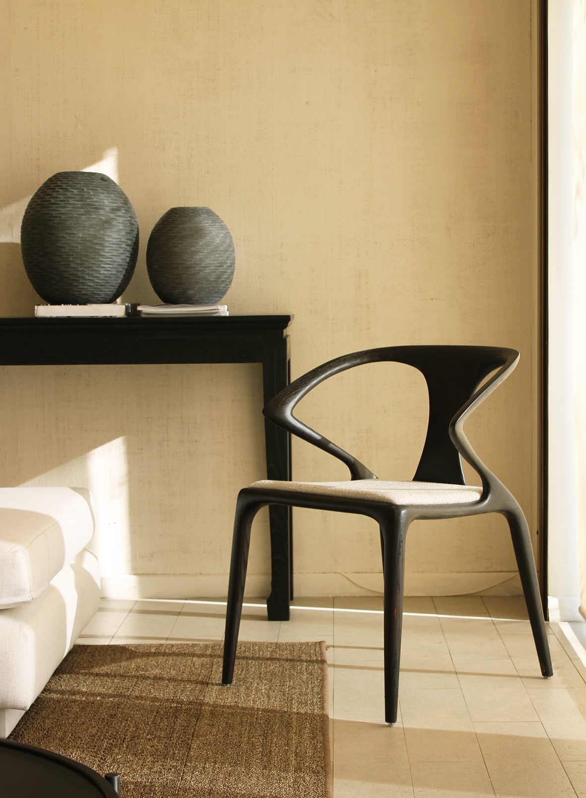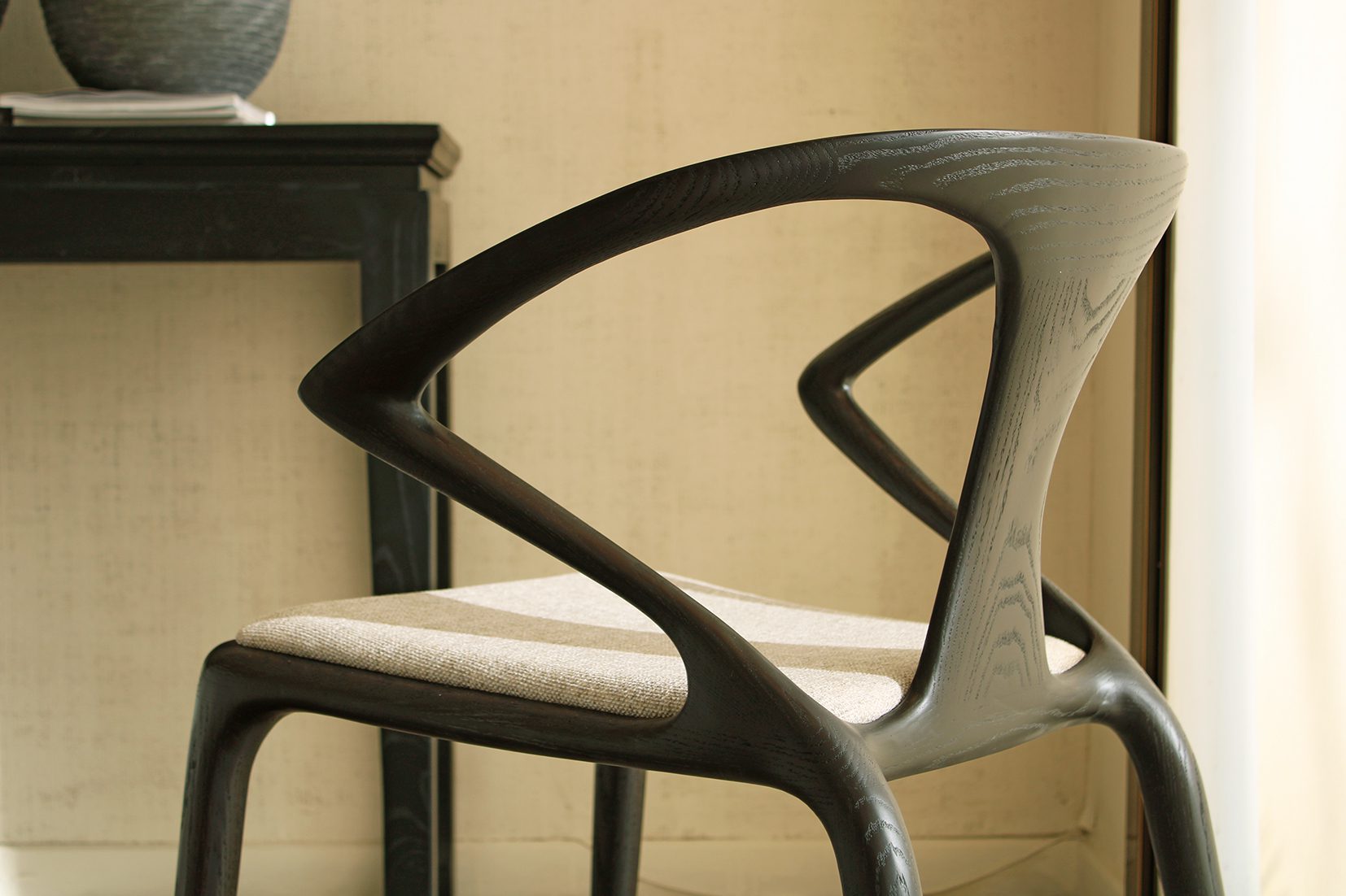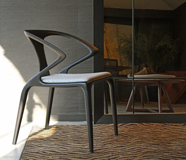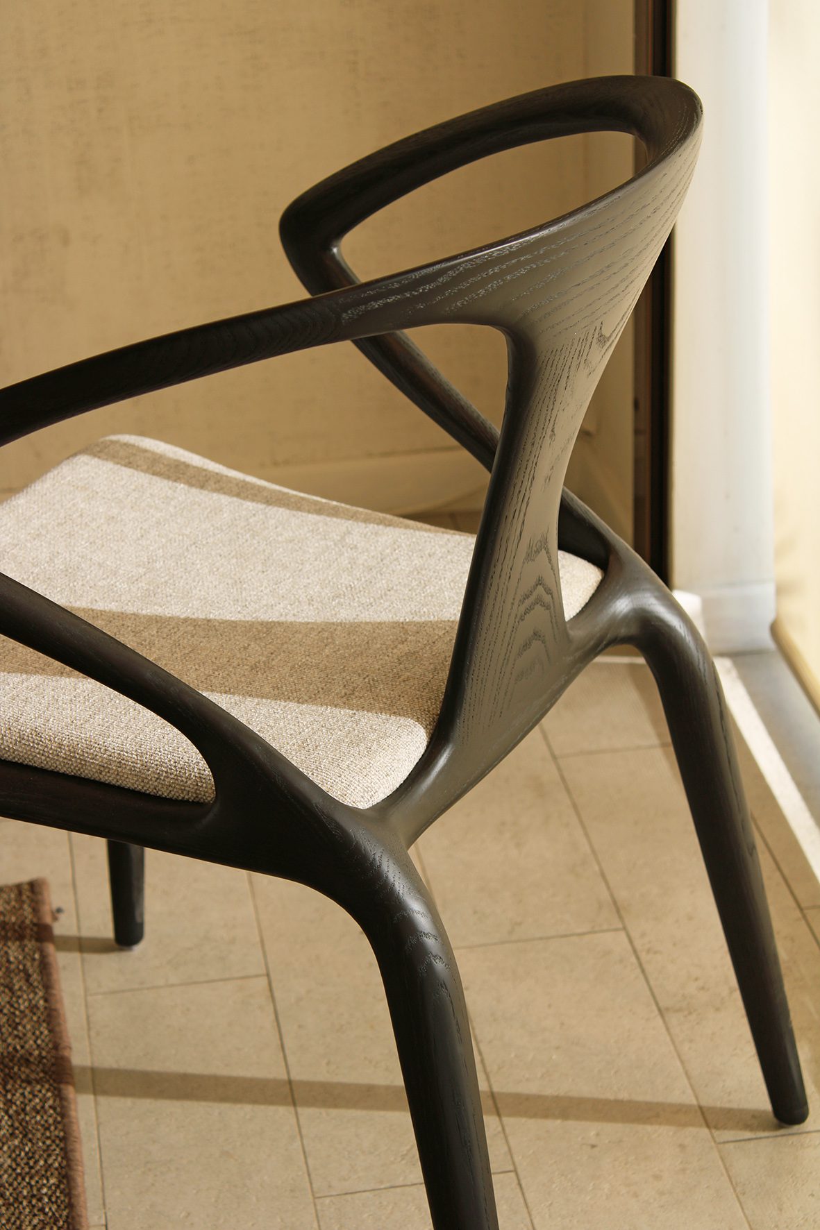 Silla en madera de Roble Americano, asiento en género gris (el de la imágen) o género lavable Aquaclean a elección.