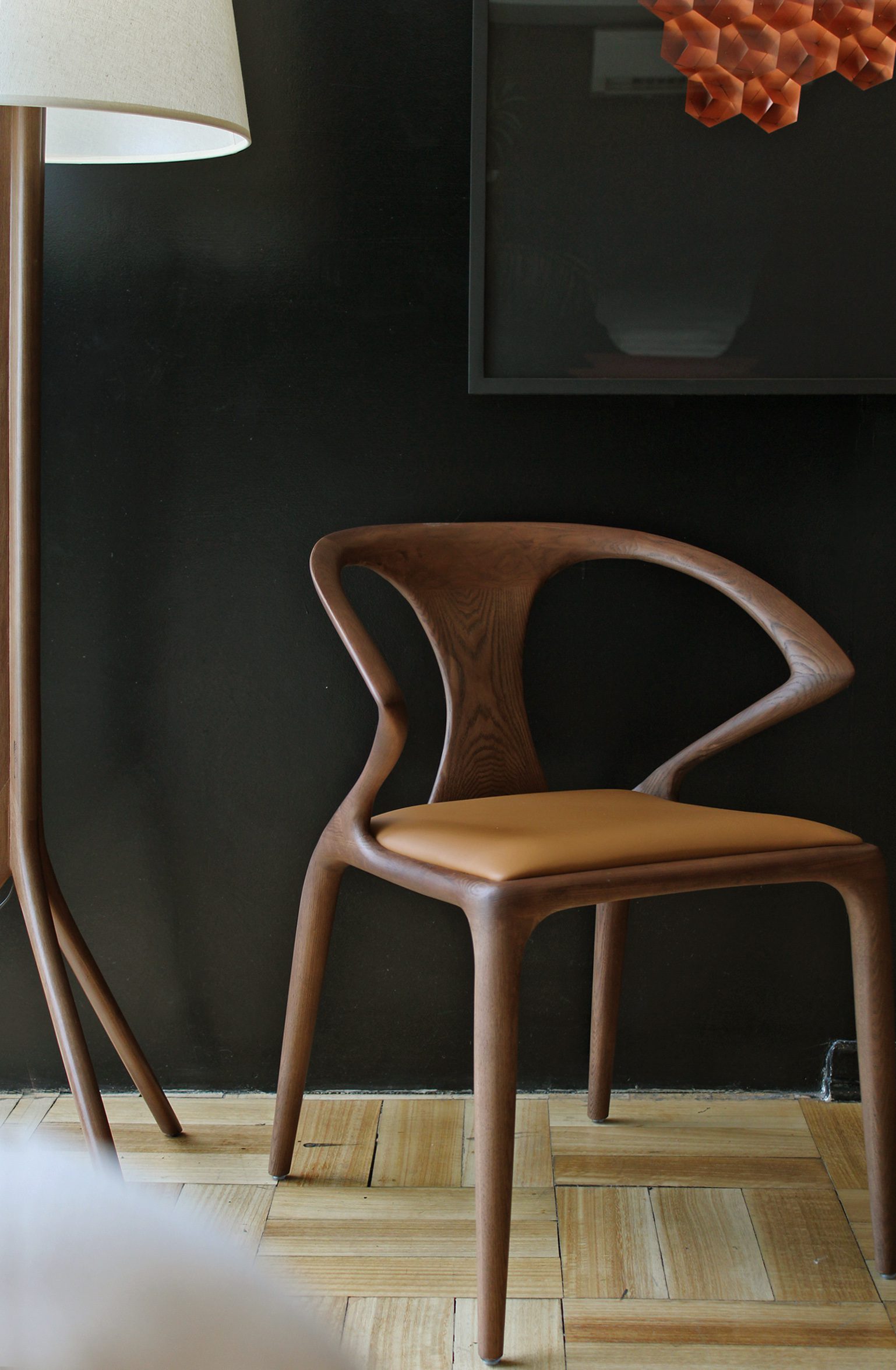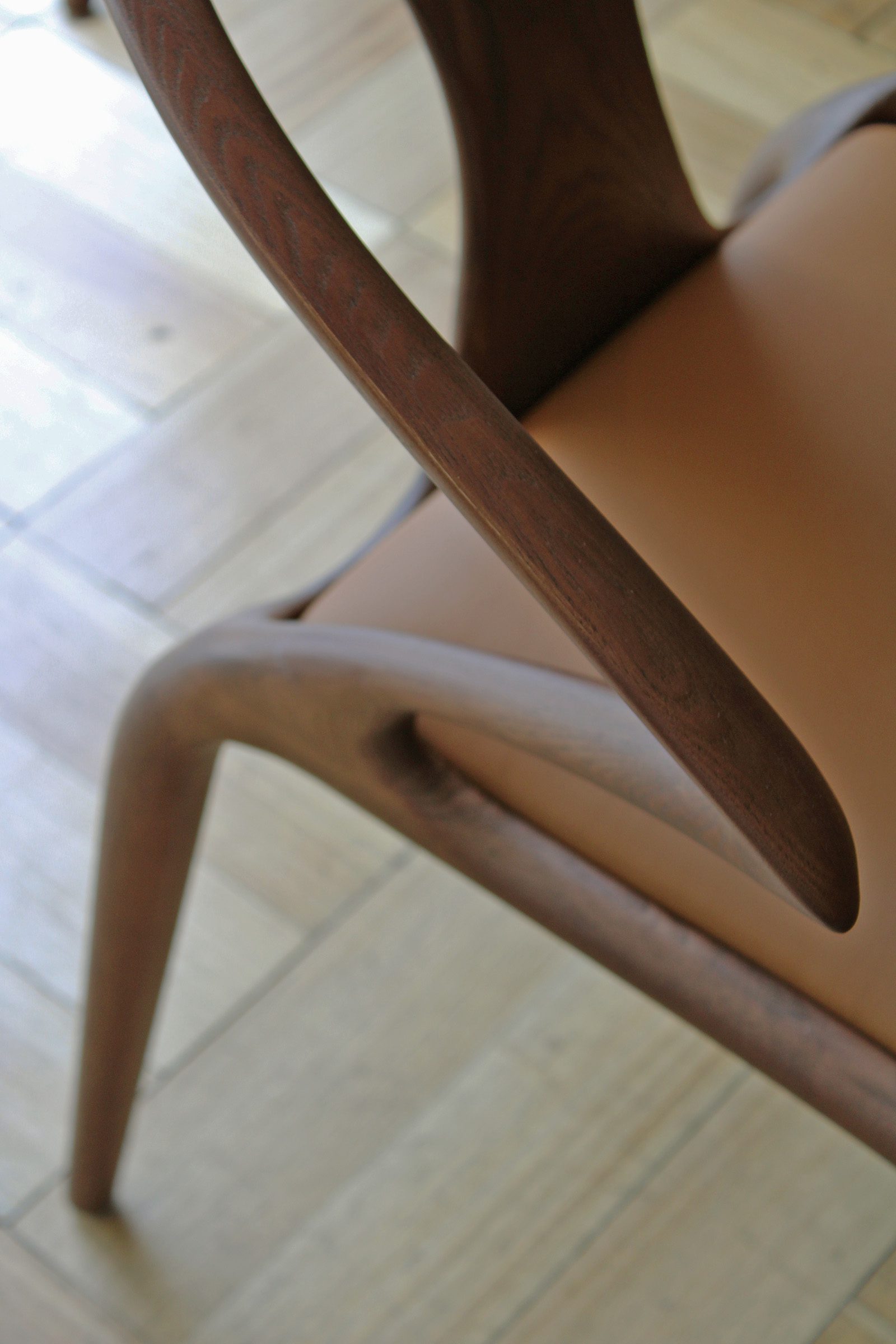 Silla en madera de Roble Americano, asiento en eco cuero (el de la imágen) o género lavable Aquaclean a elección.