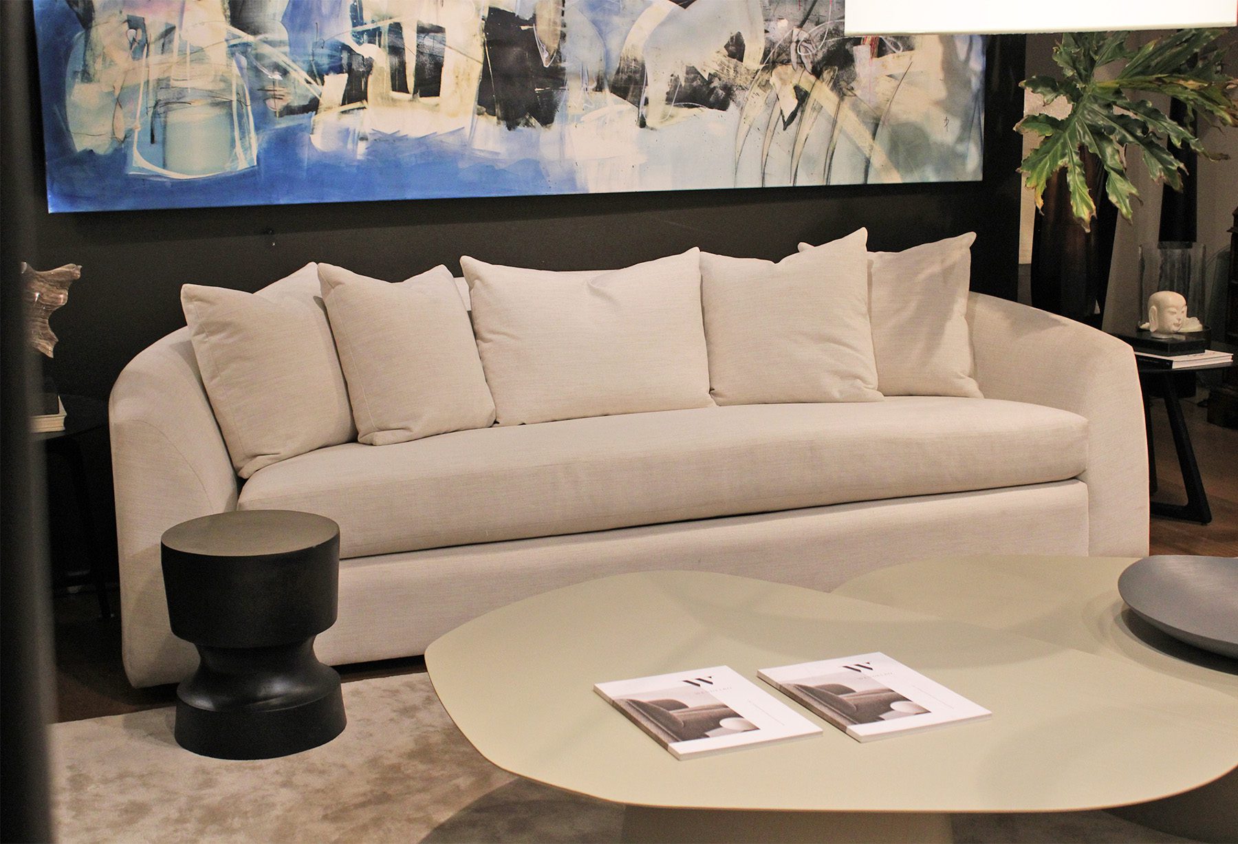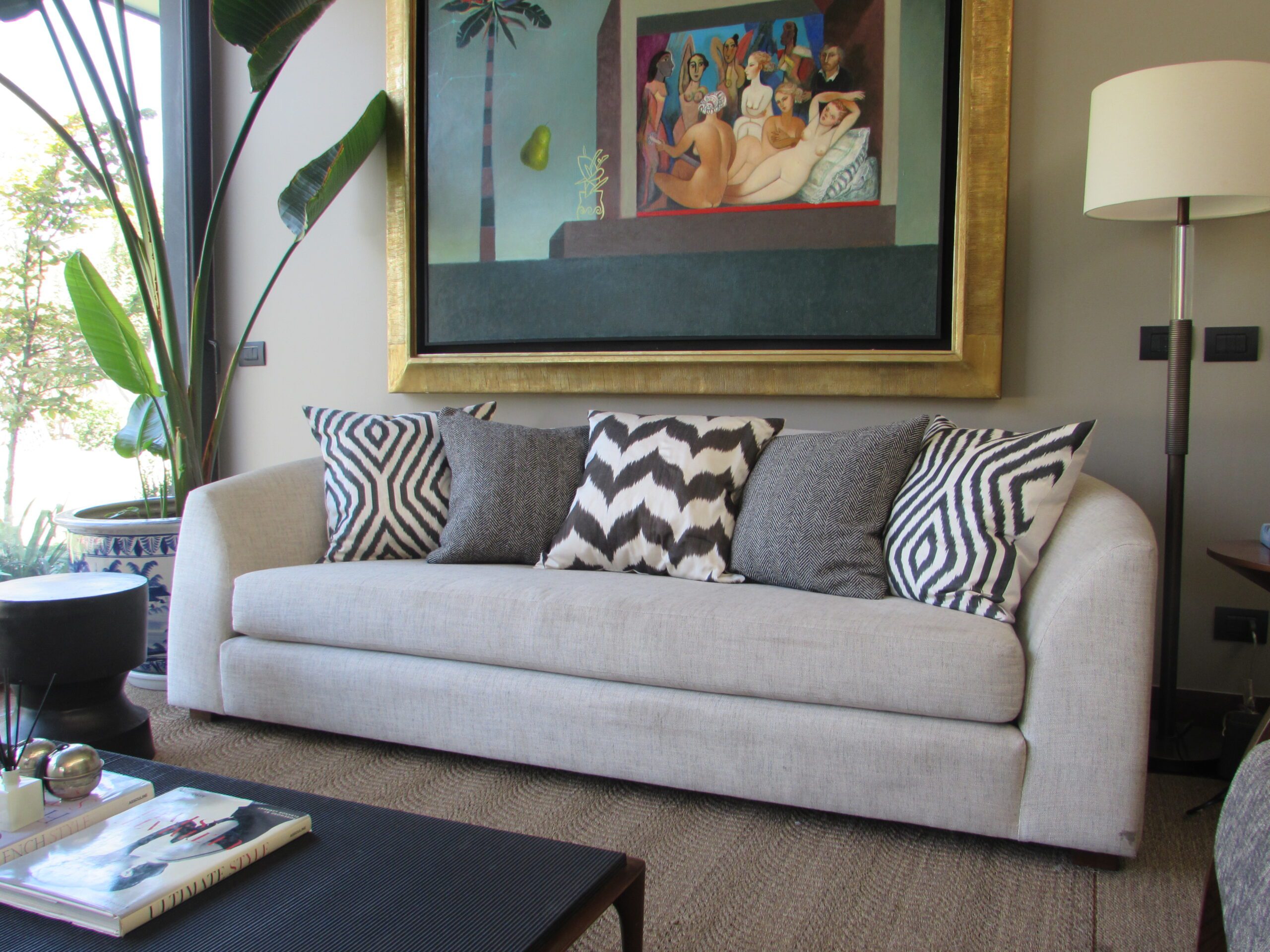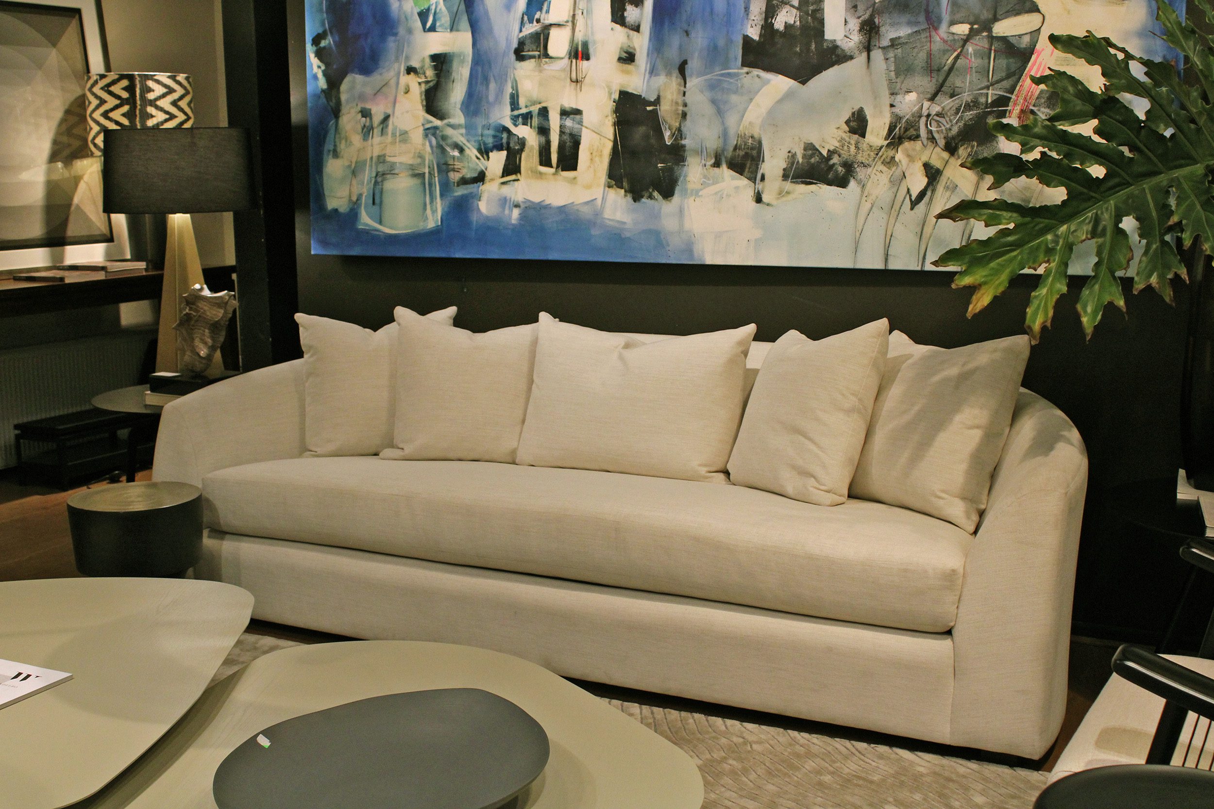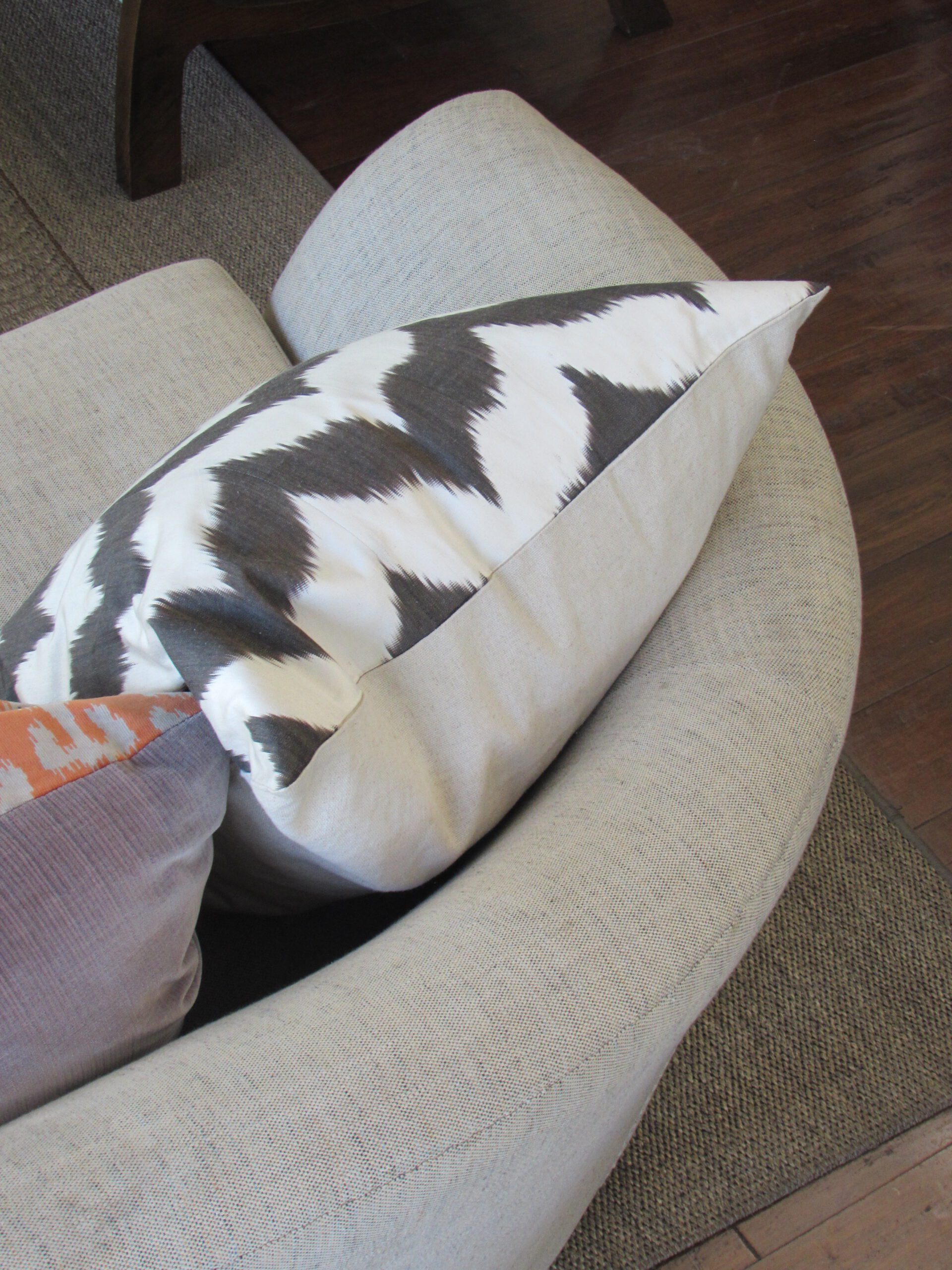 Sofá con estructura en madera de Lenga, fuelle relleno con resortes y espuma de alta densidad. Cojines del respaldo rellenos con pluma.