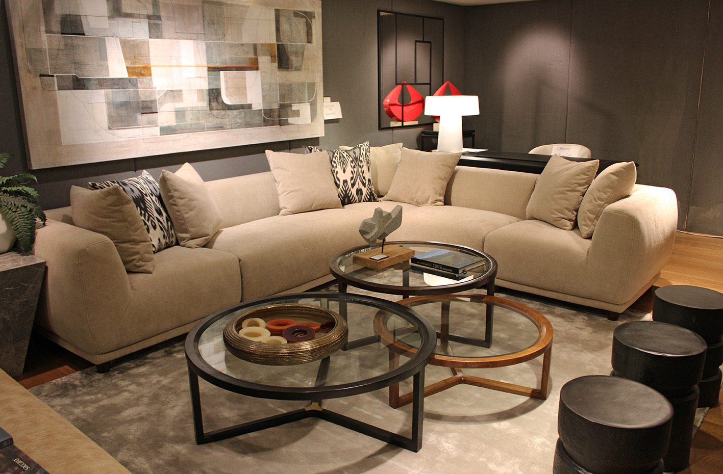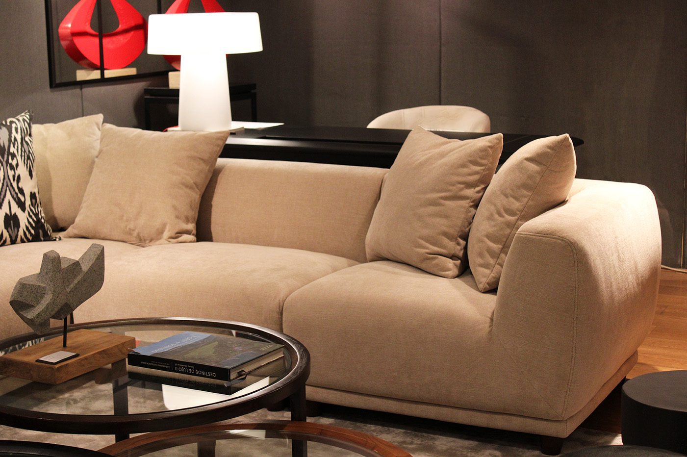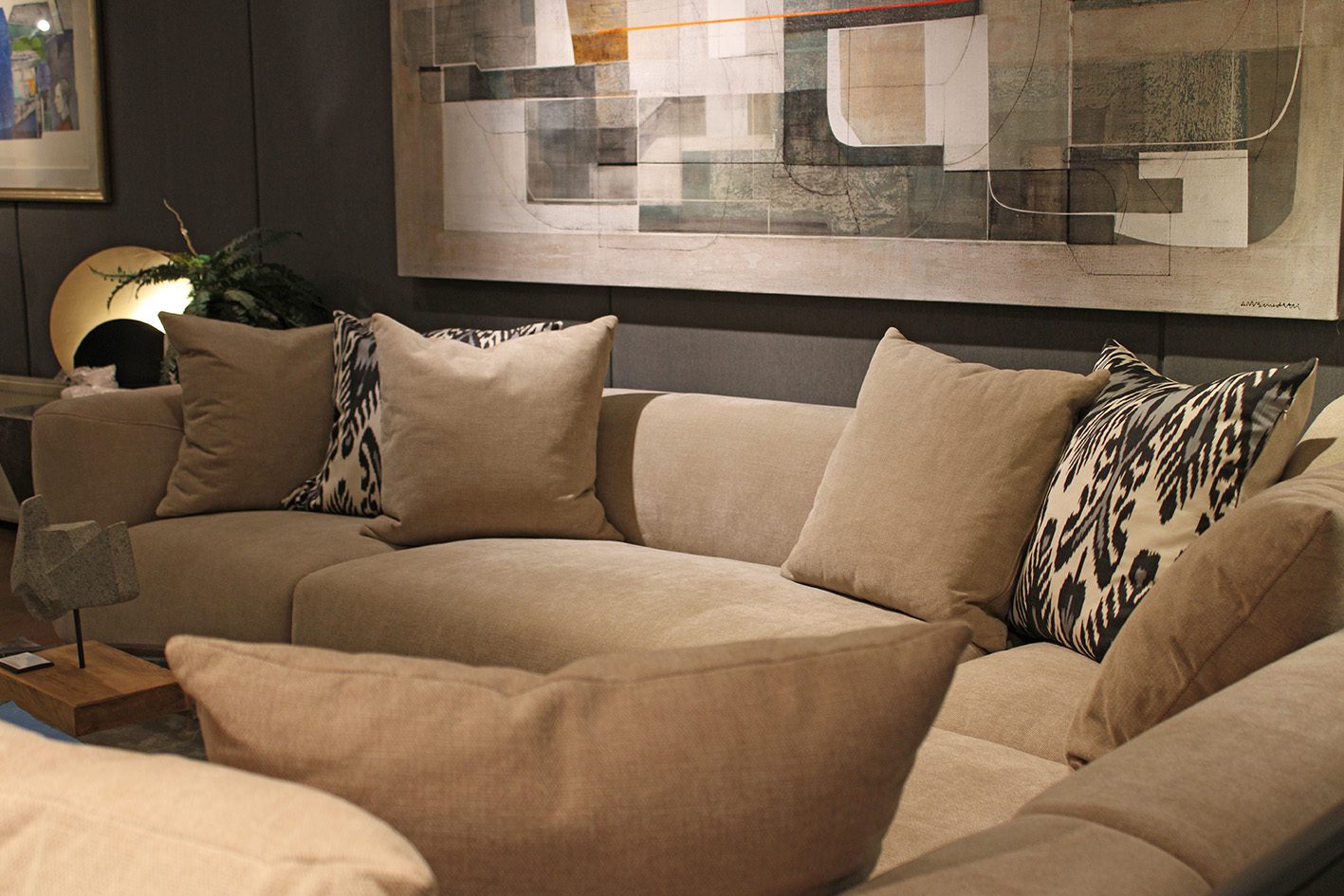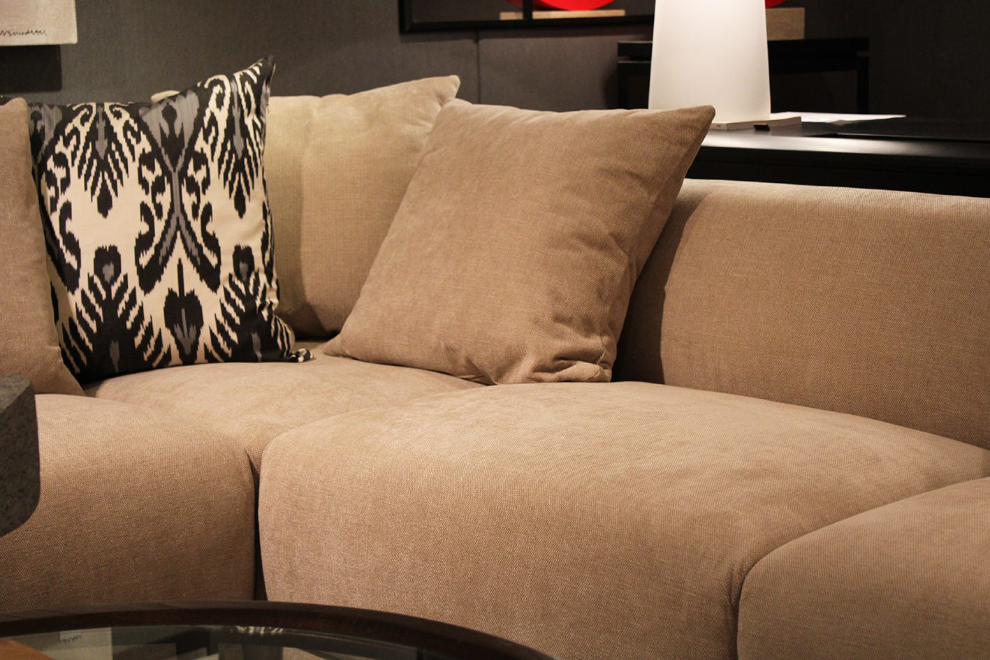 Sofá importado que consta de 6 módulos que se pueden seleccionar indistintamente y conjugar de diversas maneras. Todos los módulos tienen la misma profundidad por lo que se pueden reagrupar y distribuir según necesidad.