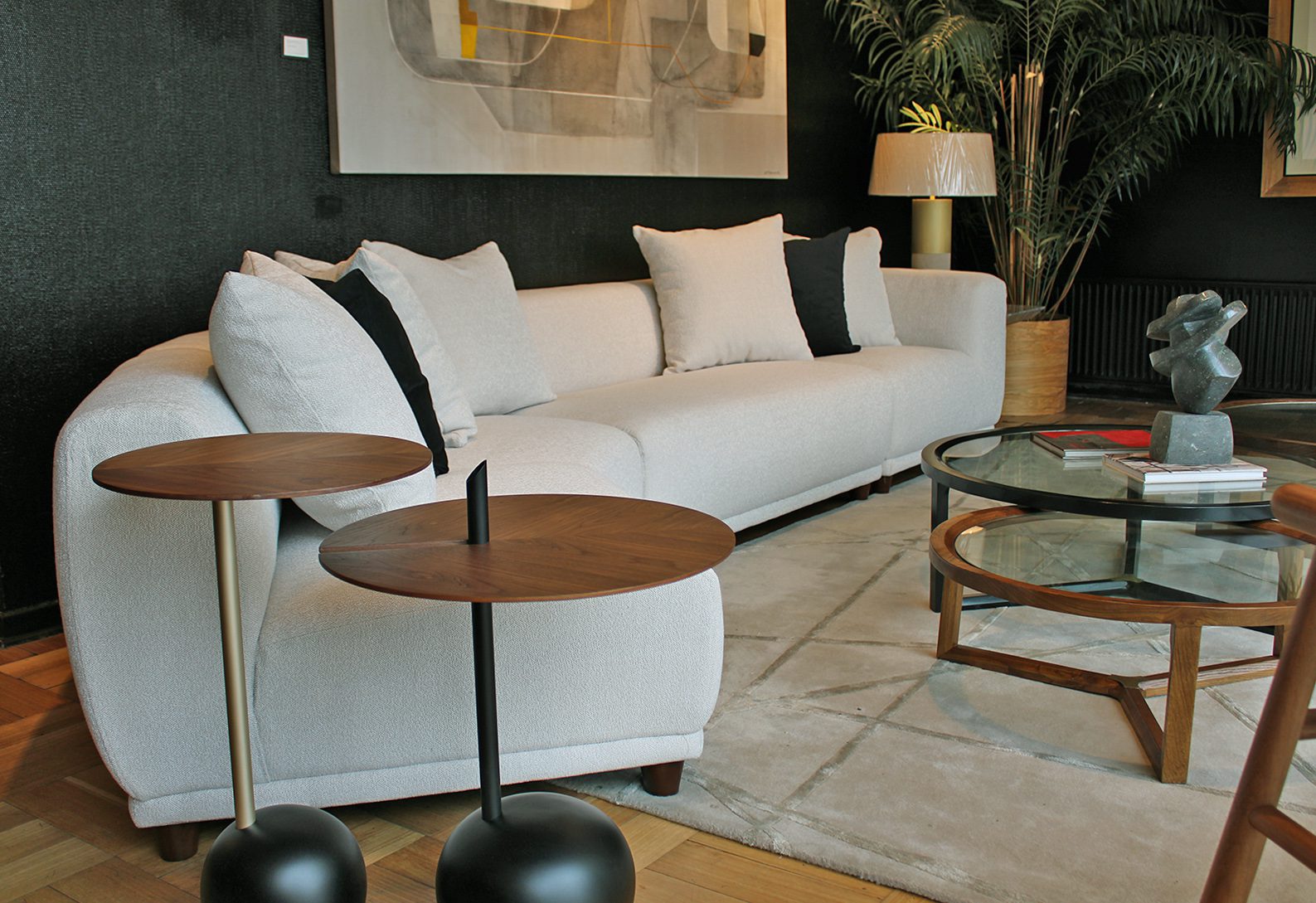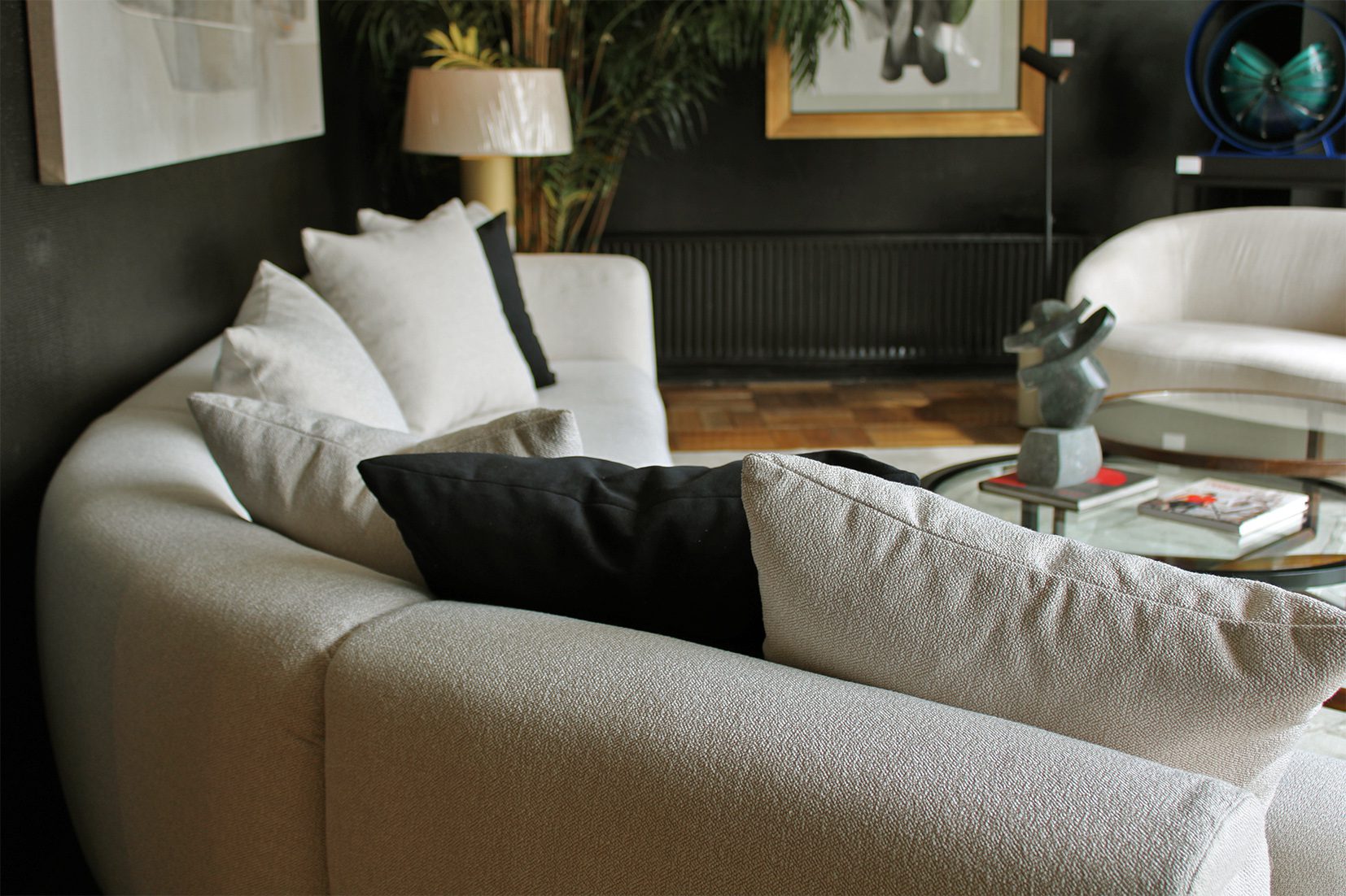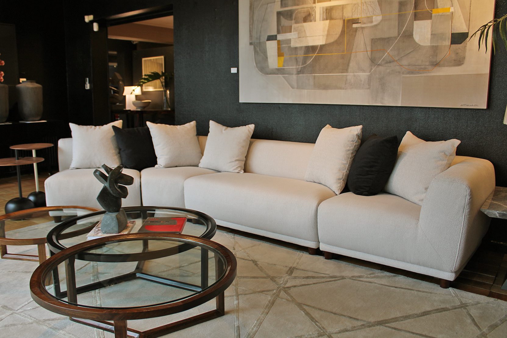 Sofá importado que consta de 6 módulos que se pueden seleccionar indistintamente y conjugar de diversas maneras. Todos los módulos tienen la misma profundidad por lo que se pueden reagrupar y distribuir según necesidad.